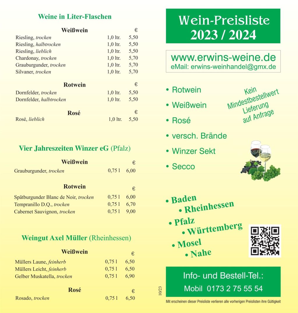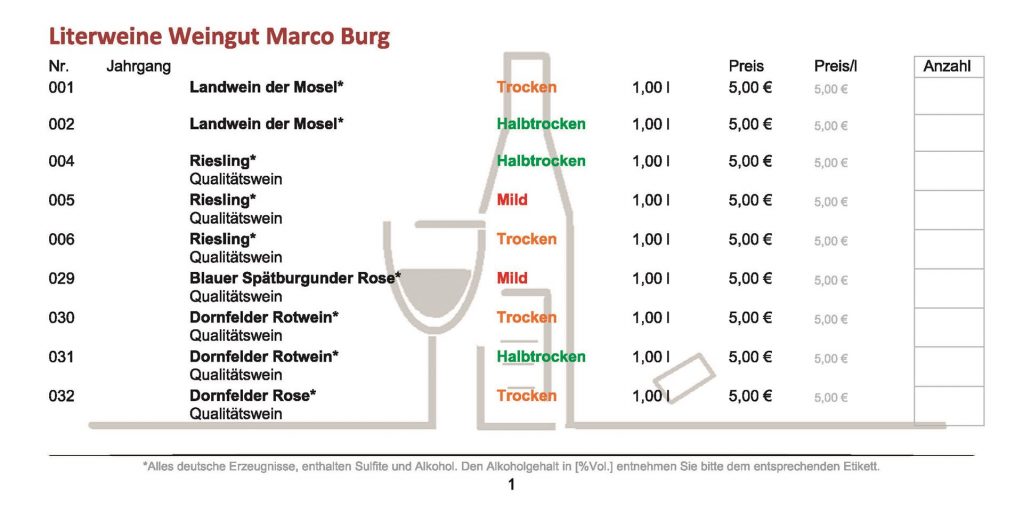 In der Regel halten wir die nachfolgenden Weine, Säfte und Brände lagermässig vor. Es kann dennoch einmal vorkommen, dass Sie auf einen gern getrunkenen Wein ausnahmsweise 1 bis 2 Tage warten müssen. Wir bitten um Ihr Verständnis.
